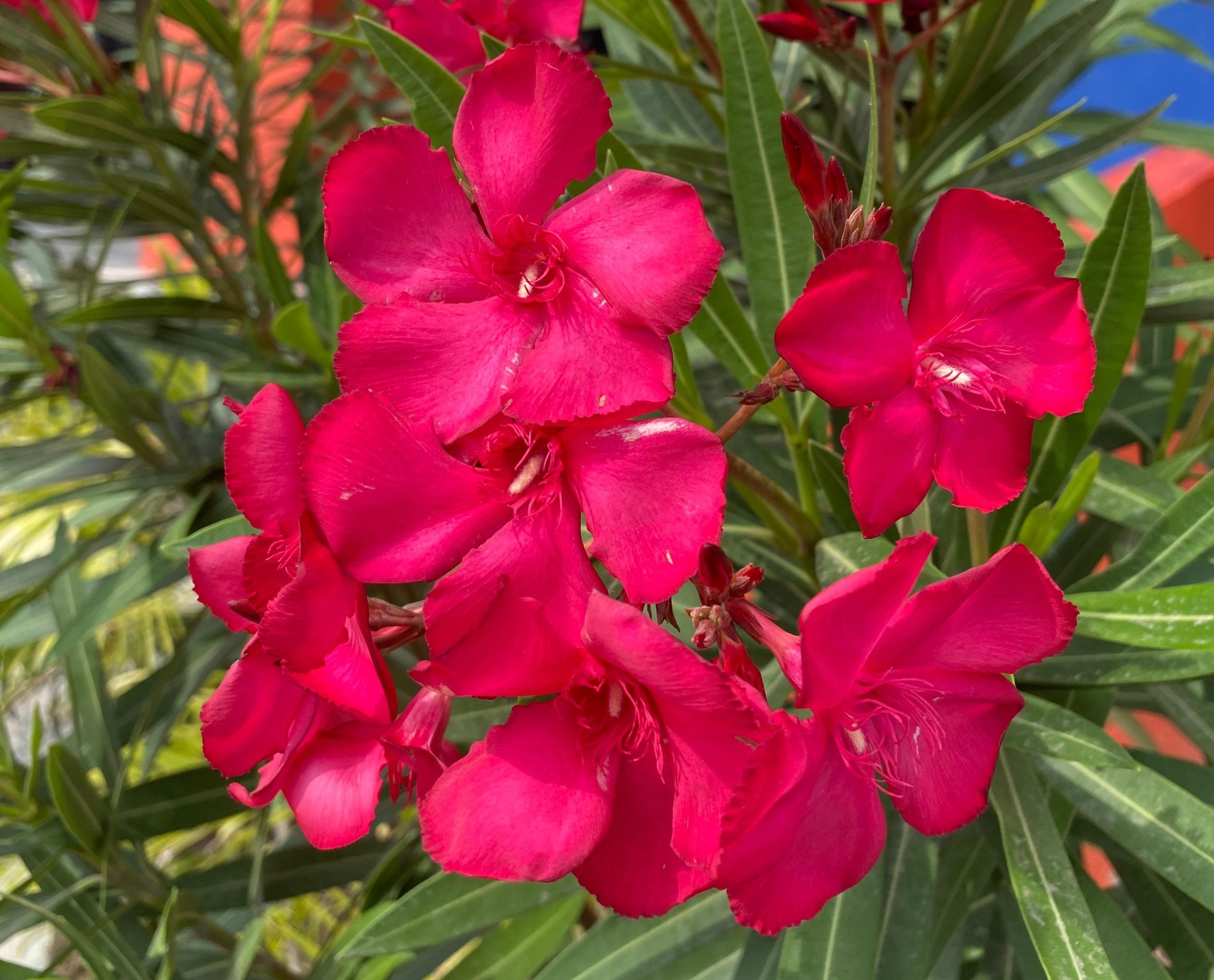 El Nerium oleander, conocido comúnmente como Adelfa, es un arbusto de hoja perenne con flores vistosas y perfumadas que pueden ser rosas, blancas, rojas o amarillas. Se encuentra en muchas regiones cálidas del mundo, especialmente en zonas mediterráneas y tropicales.