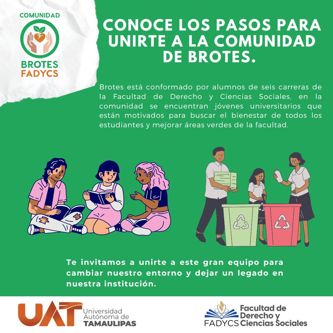 Brotes está conformado por alumnos de las seis carreras que se imparten en la Facultad de Derecho y Ciencias Sociales, en este grupo se encuentran jóvenes universitarios que están motivados para buscar el bienestar de todos los estudiantes y mejorar áreas verdes de la facultad.